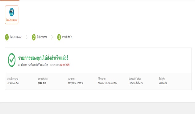 06หลังจากเจ้าหน้าที่ตรวจสอบ สถานะฝากเงินของท่านจะเปลี่ยนเป็น ฝากสำเร็จ